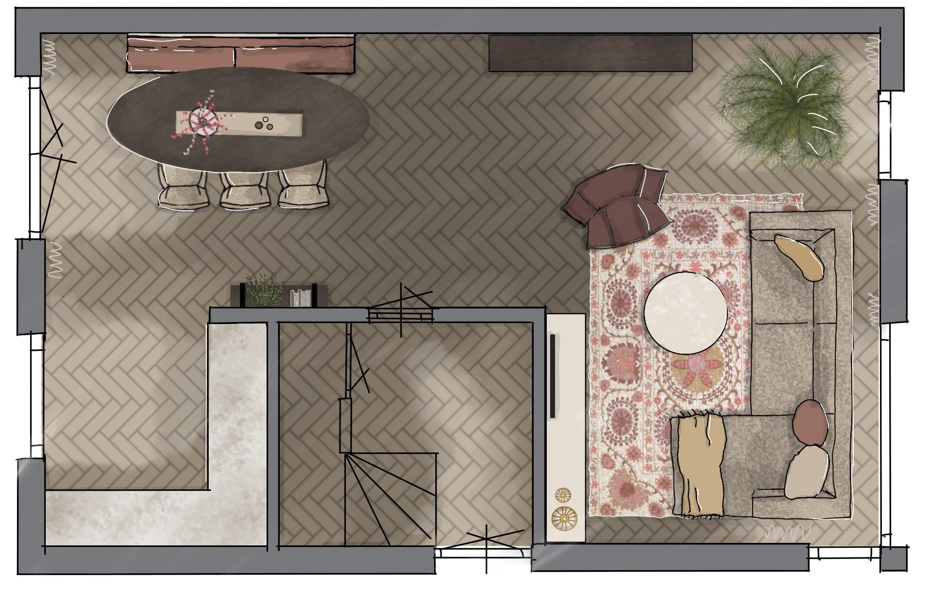 Na het interieuradvies werk ik alles uit in een digitaal projectboek inclusief de geadviseerde stalen en materialen. Zo heb je een complete basis om zelf verder mee aan de slag te gaan.